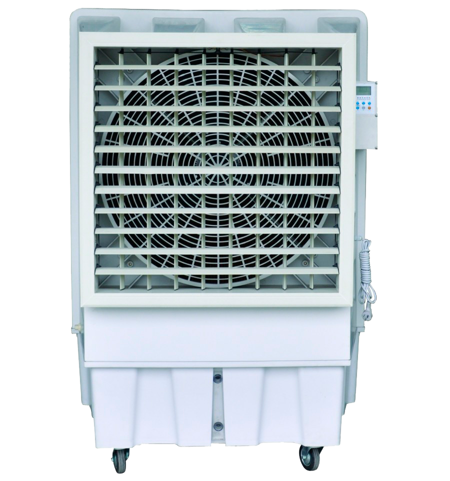 Evaporativo de alta tecnología, sencillo y extraordinariamente fiable, debido a su diseño de origen europeo. La evaporación del agua reduce el calor circundante provocando un descenso de la temperatura. Cuando el agua se distribuye continuamente sobre la superficie de la almohadilla de enfriamiento, el aire que pasa por la almohadilla provoca la evaporación del agua, consiguiendo que el aire se enfríe y refresque. El agua en circulación baja al depósito, donde es nuevamente bombeada hacia arriba pasando por las almohadillas de enfriamiento. Si se utiliza la opción de la manguera (suministrada de serie), una válvula de flotación mantiene siempre lleno el depósito. Si se llena manualmente, el depósito de gran capacidad (70 litros) garantiza horas de funcionamiento ininterrumpido. Con indicador de nivel digital que facilita una rápida comprobación del volumen de agua restante
